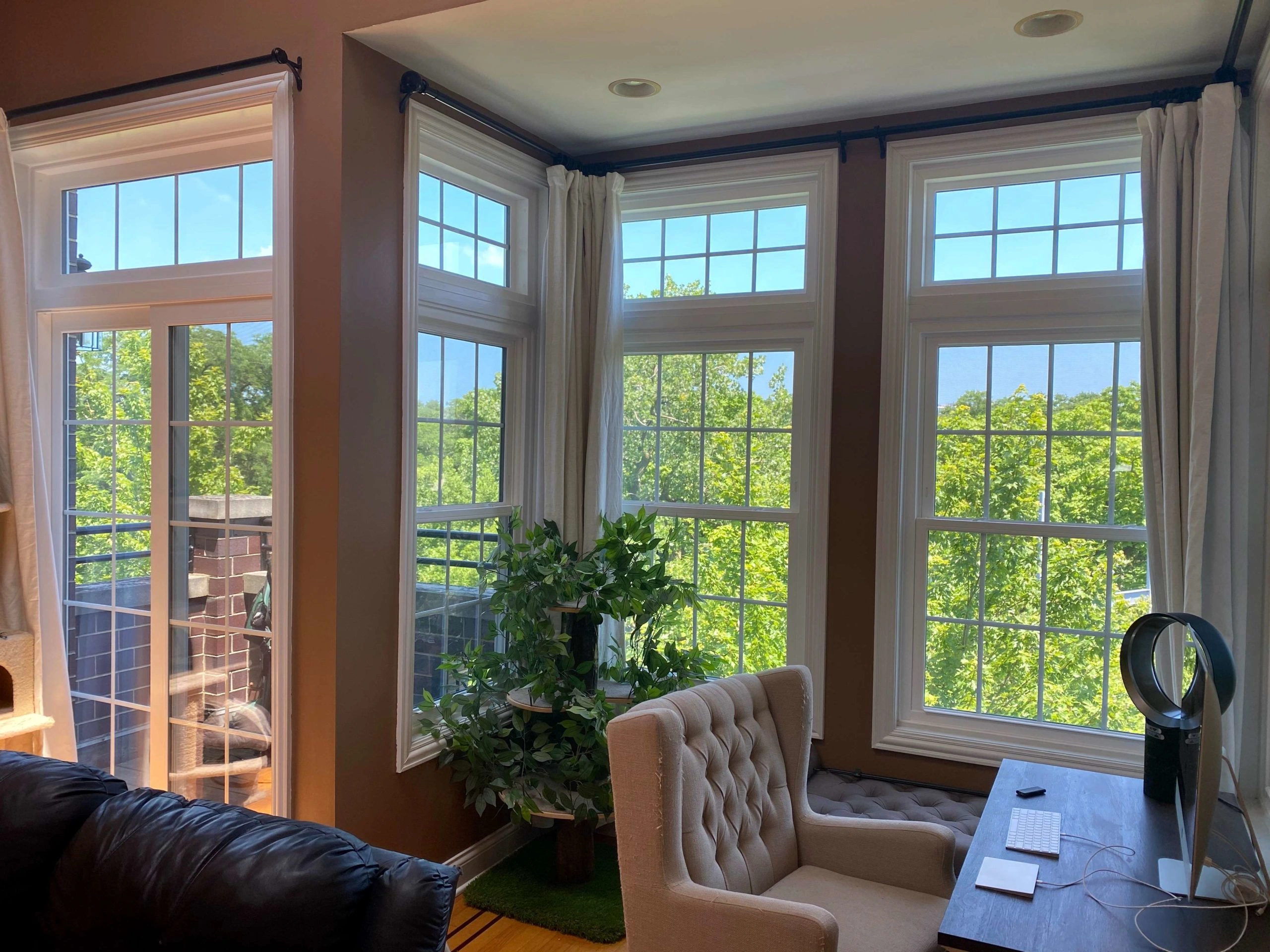 A 1920s brick home with original steel-frame casement windows. These windows are notoriously “leaky” and prone to condensation.